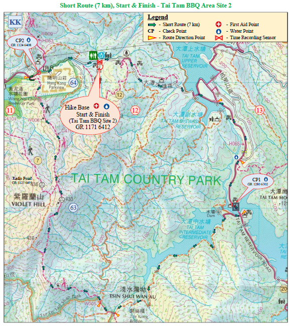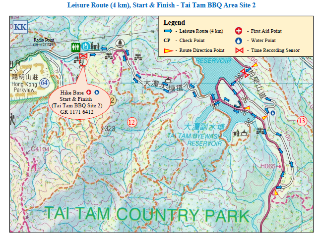 Tai Tam Country Park Barbecue Area Site 2 (Start) → Tai Tam Reservoir Road → Tam Byewash Reservoir → Mount Parker Road → Tai Tam Upper Reservoir Dam → Tai Tam Reservoir Road (towards Wong Nai Chung Gap Road)→ Tai Tam Country Park Barbecue Area Site 2 (Finish)